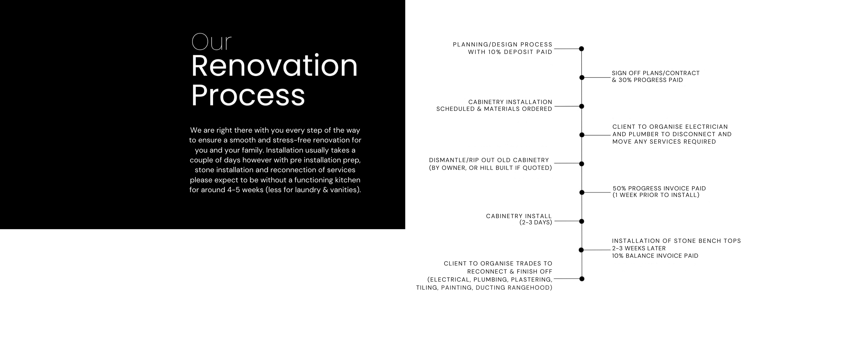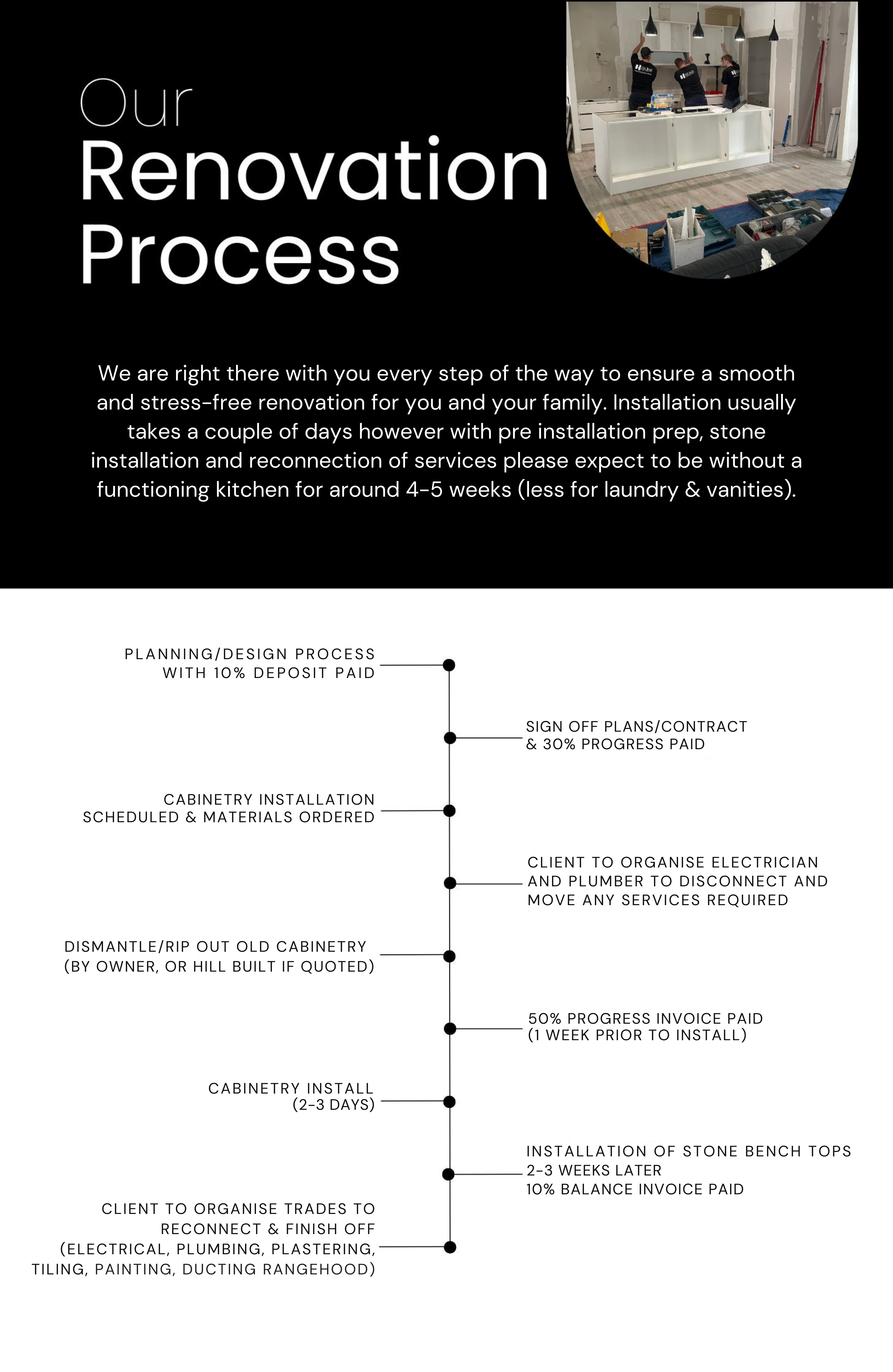Please note: We are unable to quote existing cupboard/benchtop/drawer modifications. We primarily focus on personalised family centred service for custom residential renovations or new builds.